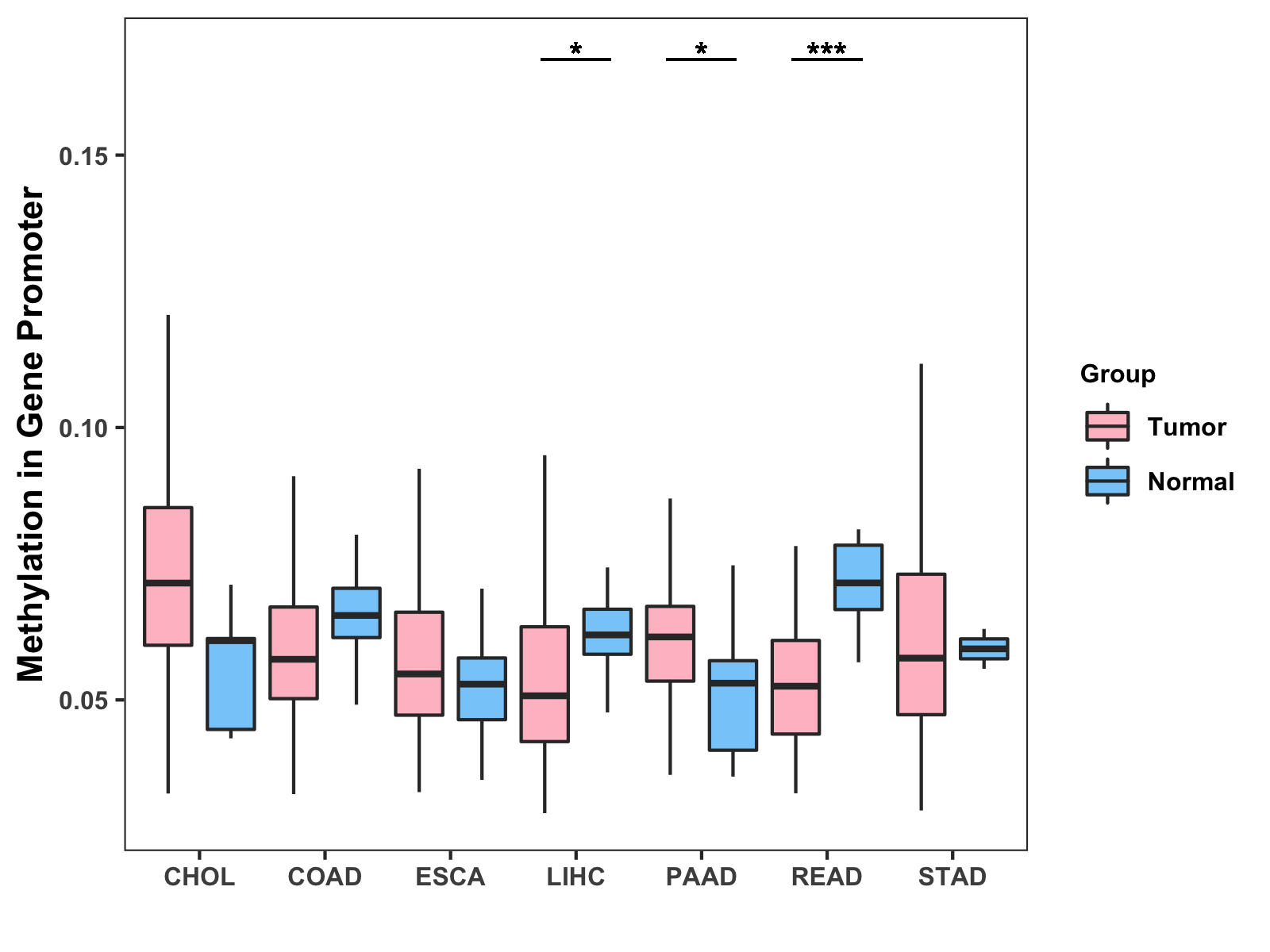 Methylation Level in Colon Cancer MODERATE Methylation Level in Rectum Cancer MODERATE
