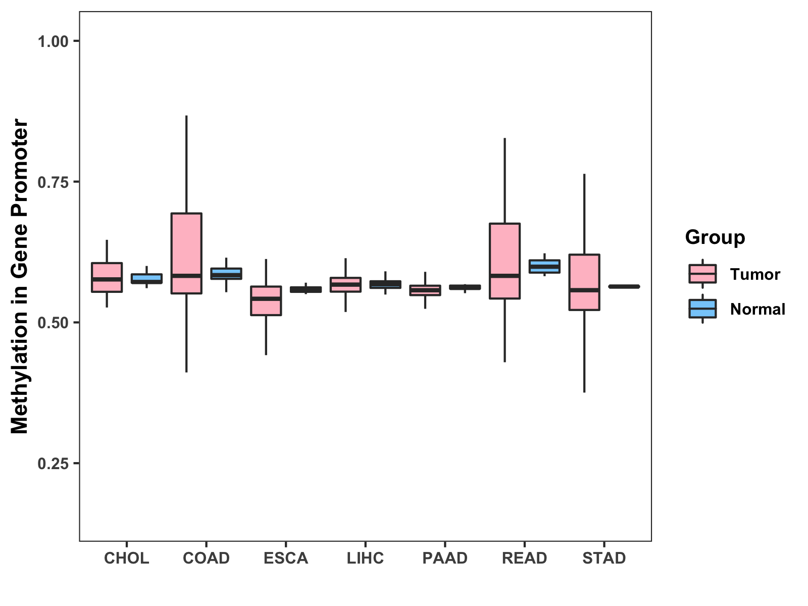 Boxplot of All Gastrointestinal Cancer ( * : 0.01-0.05 , ** : 0.005-0.01 , *** : 0.0001-0.005 , **** : < 0.0001 ) |