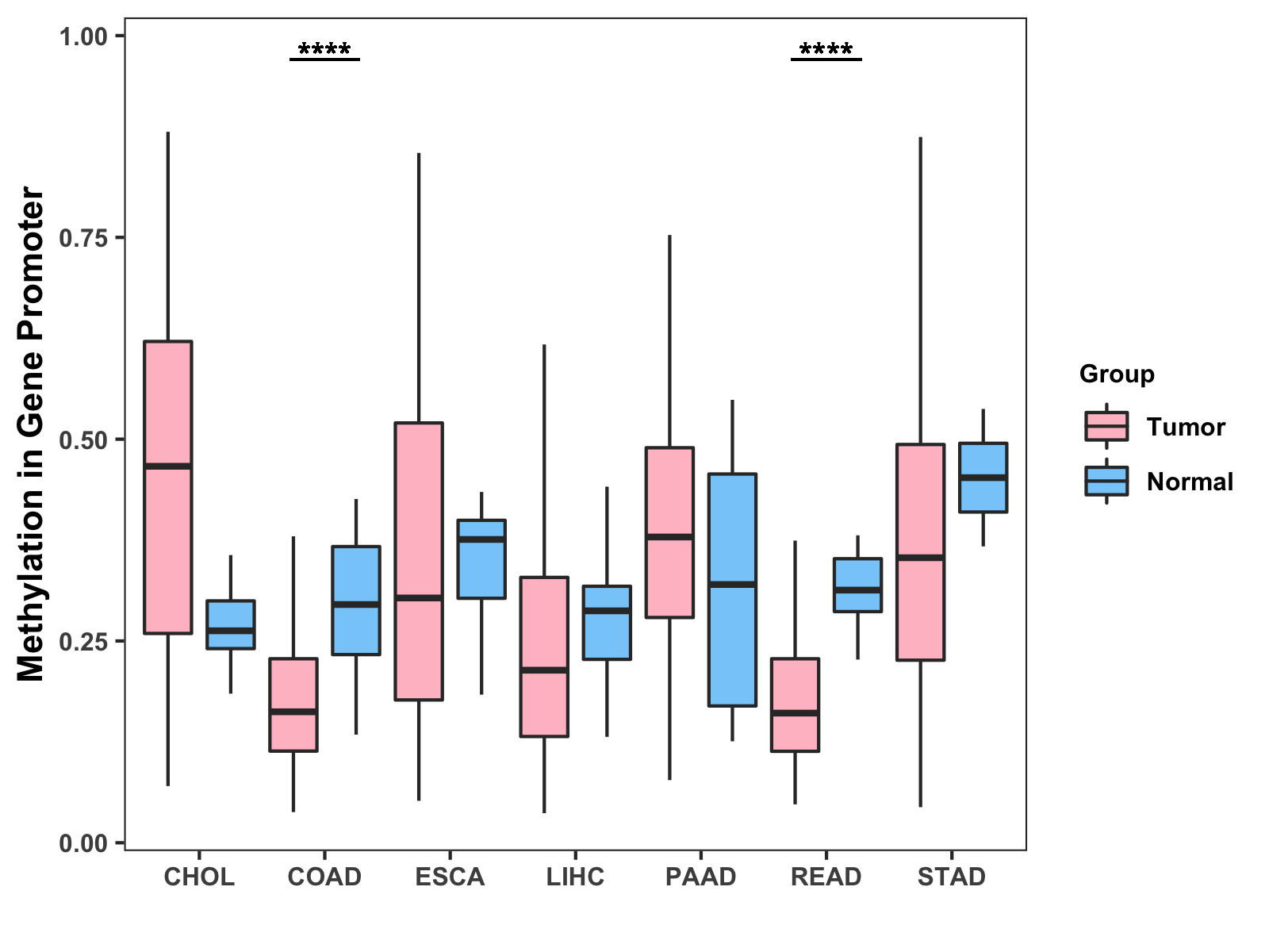 Methylation Level in Colon Cancer LOW Methylation Level in Rectum Cancer LOW