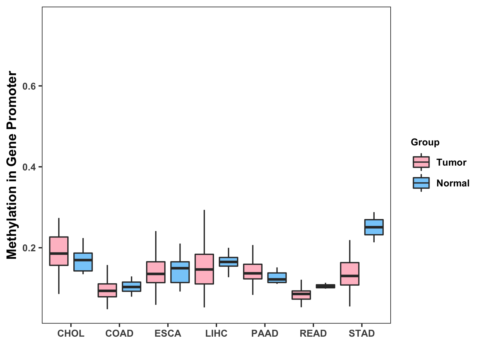 | Box Plot in Stomach Cancer | Expression-Methylation Scatter Plot in Stomach Cancer |