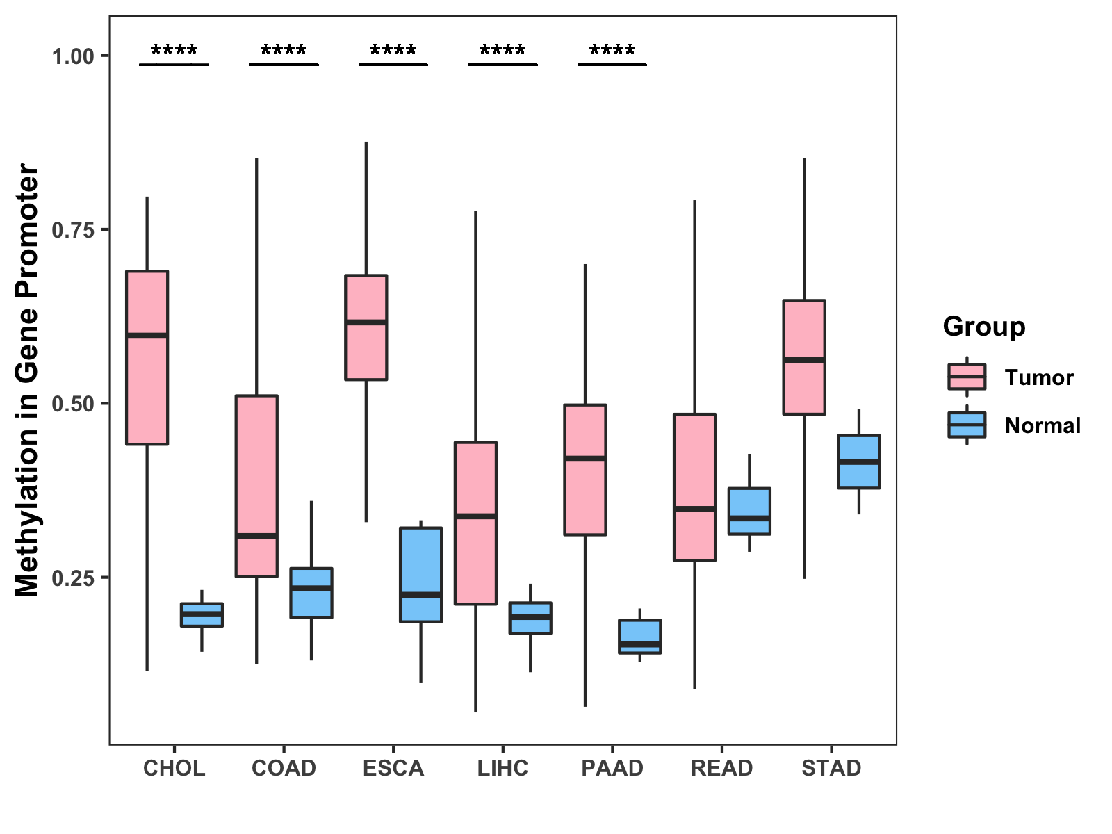 Methylation Level in Colon Cancer MODERATE Methylation Level in Rectum Cancer MODERATE