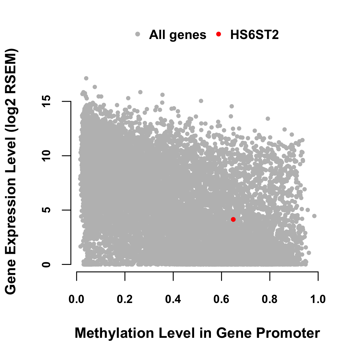 | Box Plot in Stomach Cancer | Expression-Methylation Scatter Plot in Stomach Cancer |