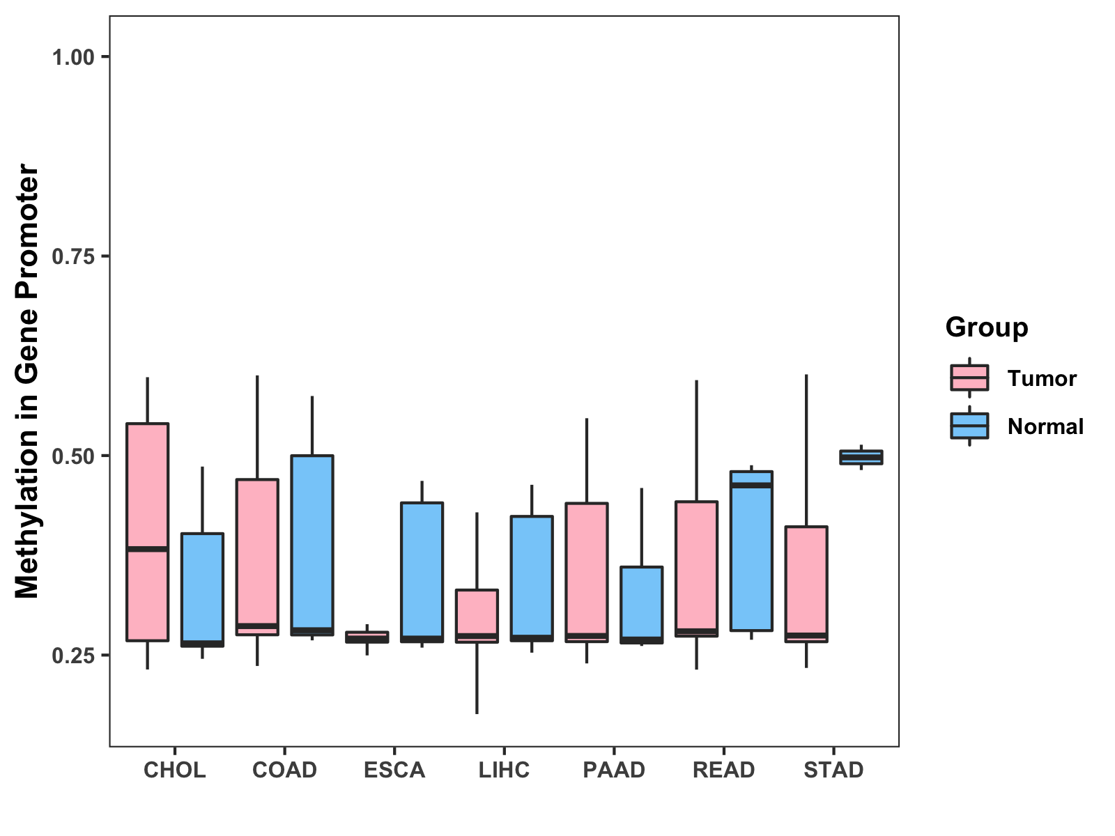Boxplot of All Gastrointestinal Cancer ( * : 0.01-0.05 , ** : 0.005-0.01 , *** : 0.0001-0.005 , **** : < 0.0001 ) |