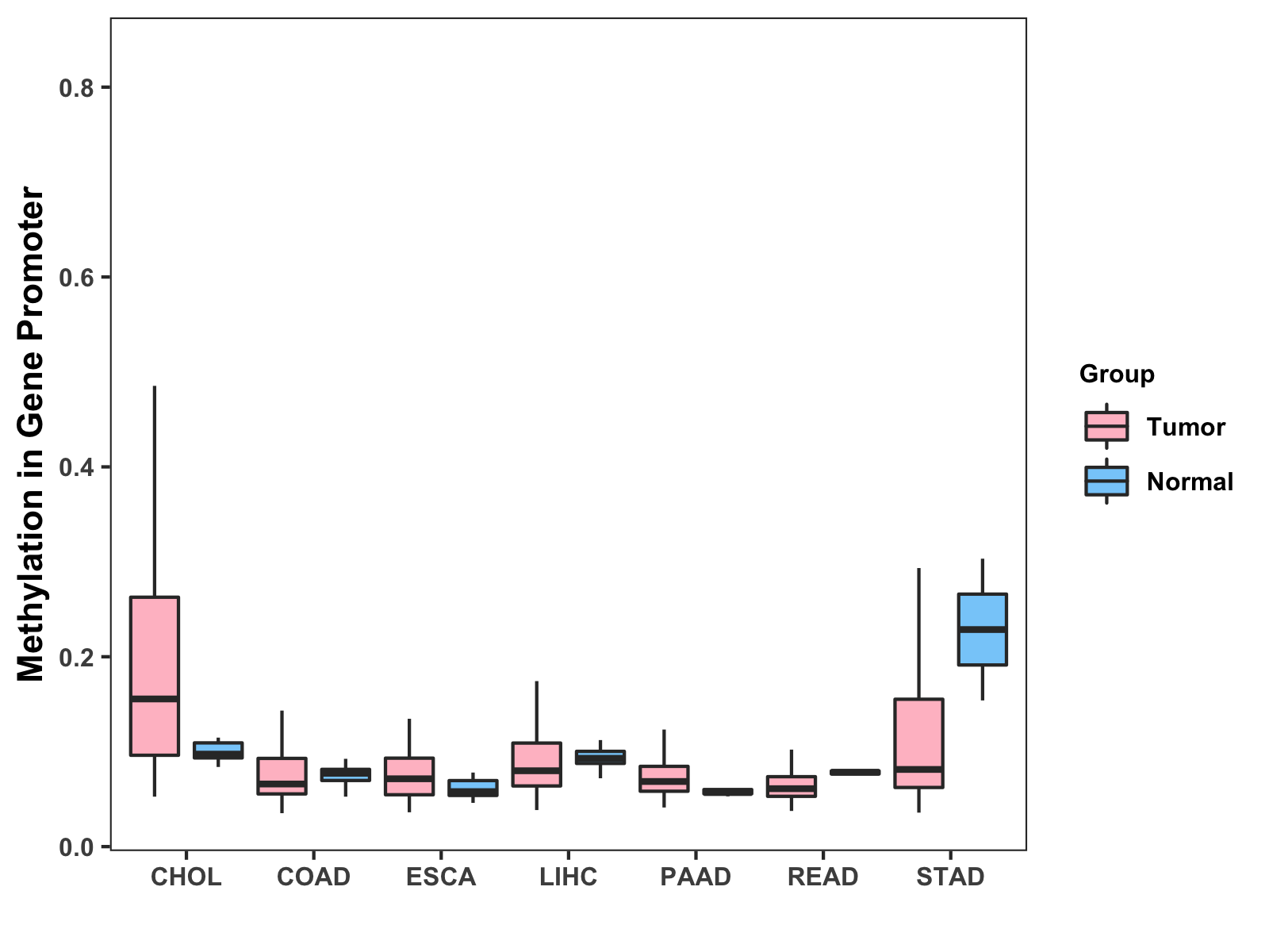| Box Plot in Stomach Cancer | Expression-Methylation Scatter Plot in Stomach Cancer |