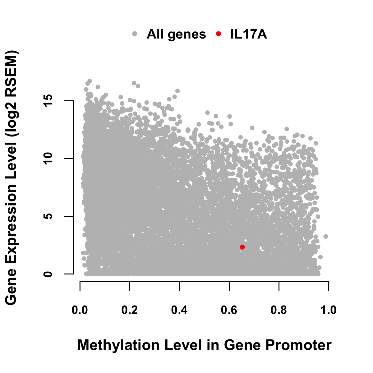Expression-Methylation Scatter Plot in Colon Cancer Expression-Methylation Scatter Plot in Rectum Cancer