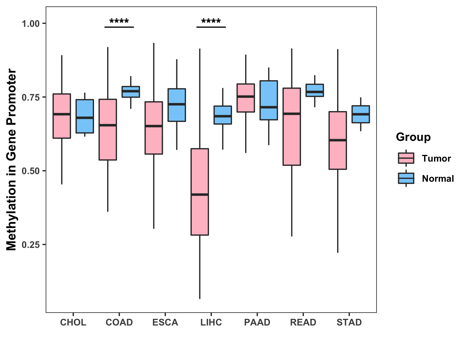Methylation Level in Colon Cancer LOW Methylation Level in Rectum Cancer MODERATE
