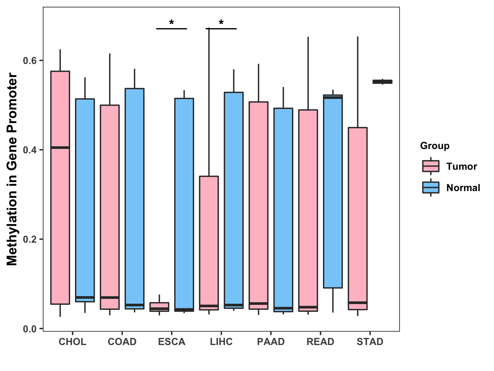 Methylation Level in Colon Cancer MODERATE Methylation Level in Rectum Cancer MODERATE