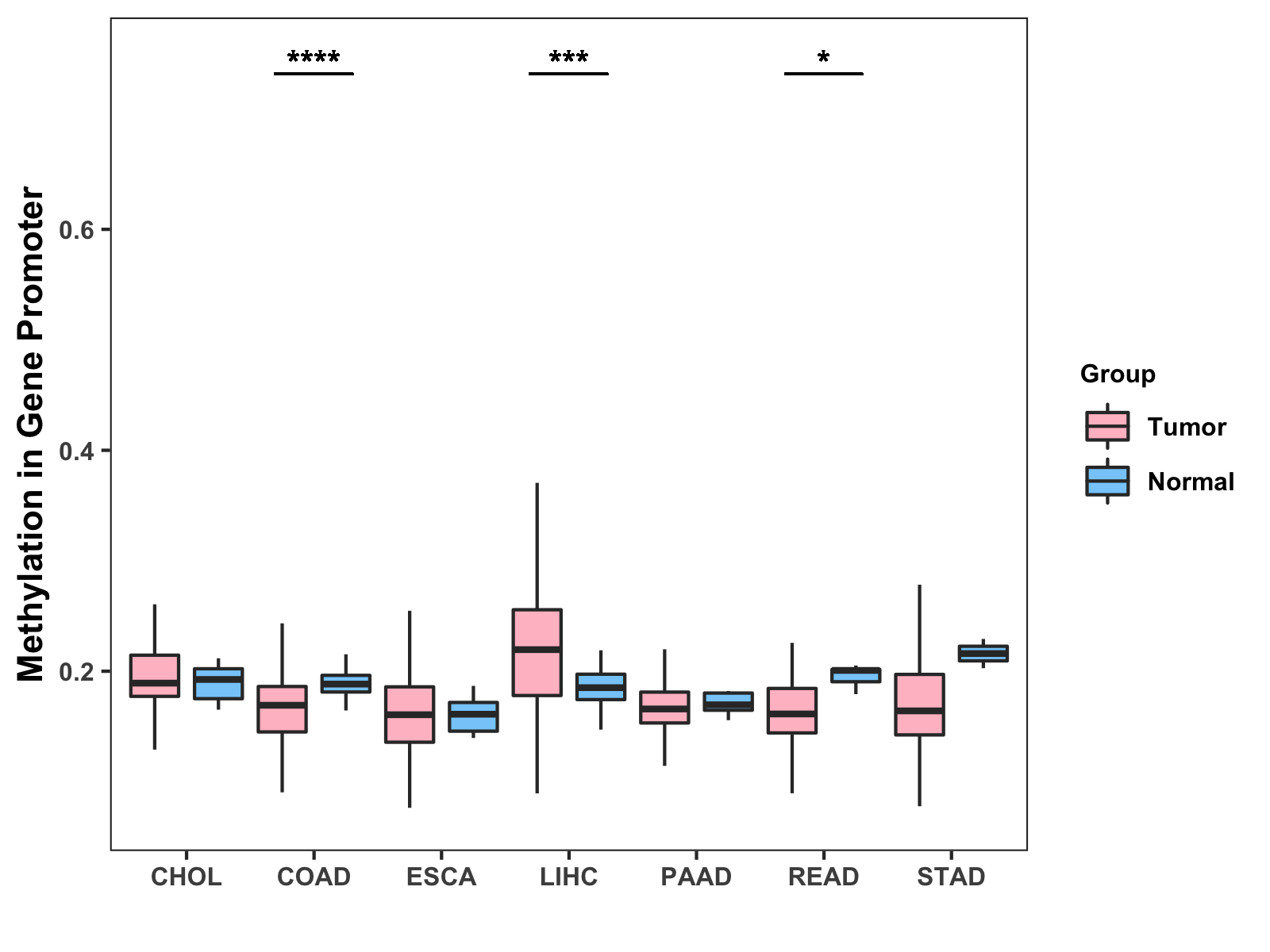 Methylation Level in Colon Cancer MODERATE Methylation Level in Rectum Cancer MODERATE
