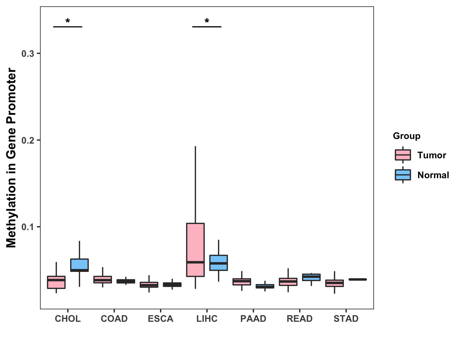 Boxplot of All Gastrointestinal Cancer ( * : 0.01-0.05 , ** : 0.005-0.01 , *** : 0.0001-0.005 , **** : < 0.0001 ) |