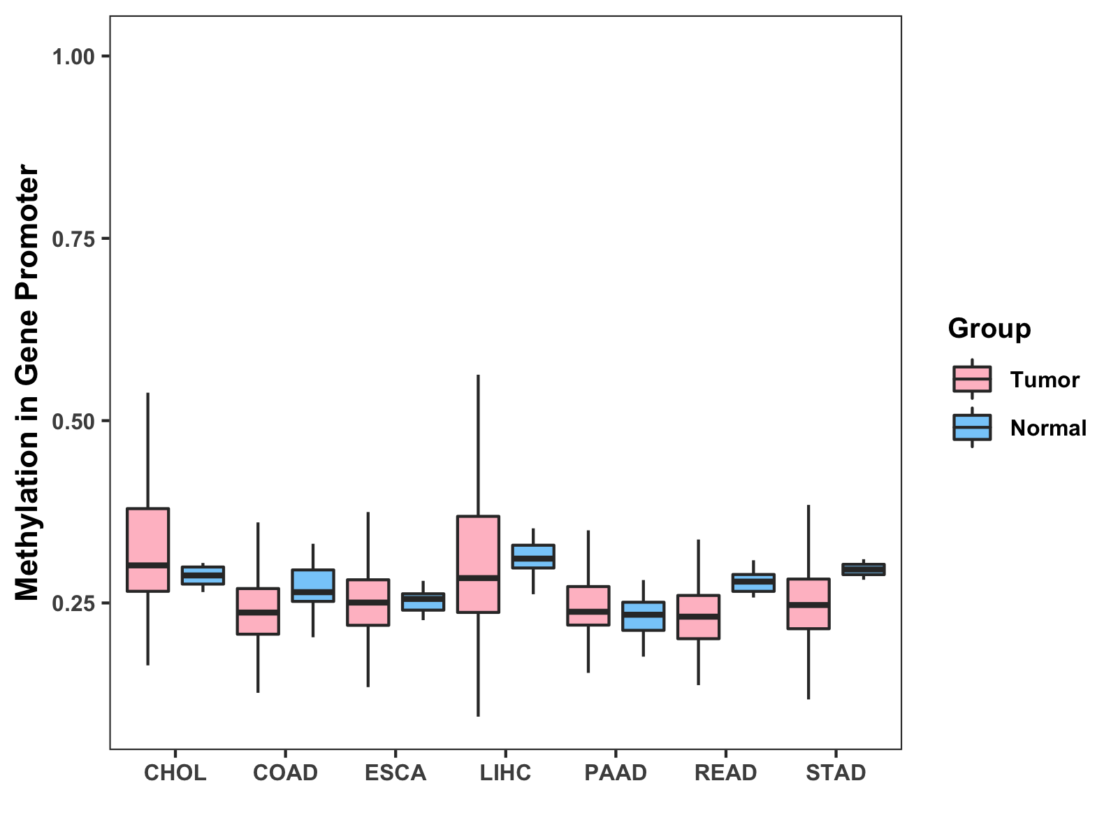 Boxplot of All Gastrointestinal Cancer ( * : 0.01-0.05 , ** : 0.005-0.01 , *** : 0.0001-0.005 , **** : < 0.0001 ) |