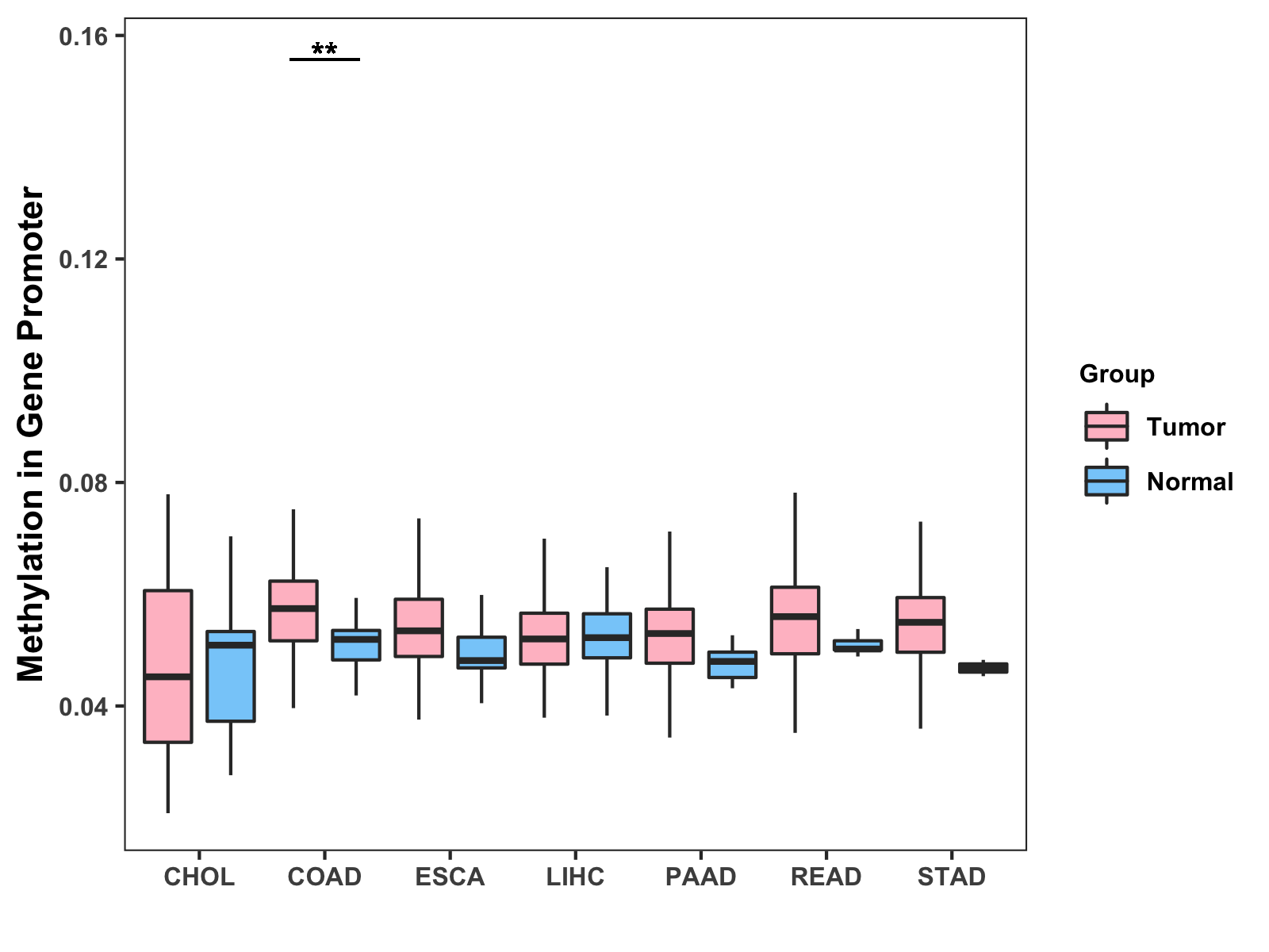 Methylation Level in Colon Cancer MODERATE Methylation Level in Rectum Cancer MODERATE