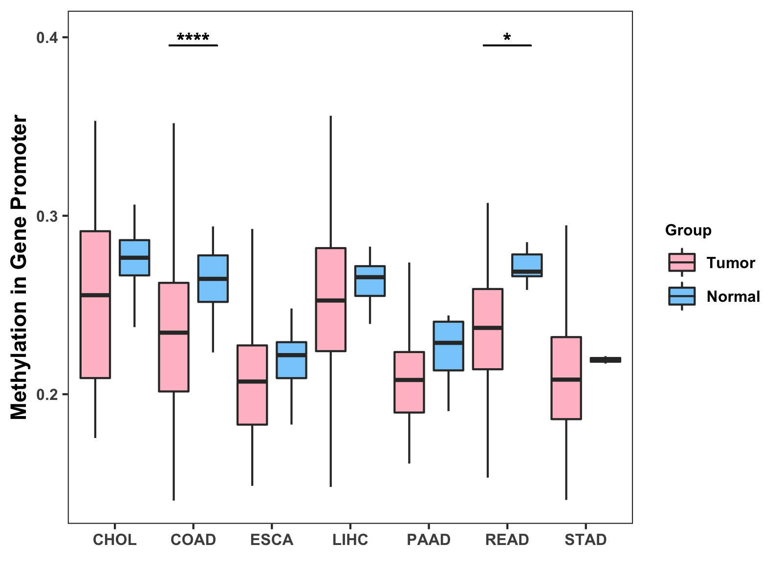 Methylation Level in Colon Cancer MODERATE Methylation Level in Rectum Cancer MODERATE