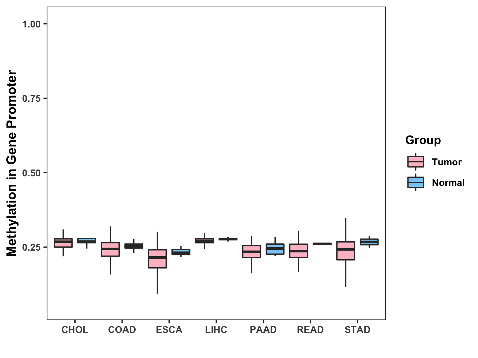 Methylation Level in Colon Cancer MODERATE Methylation Level in Rectum Cancer MODERATE