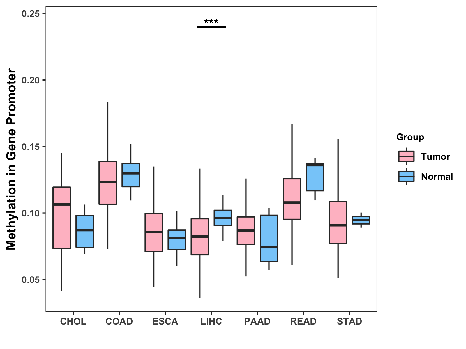 Boxplot of All Gastrointestinal Cancer ( * : 0.01-0.05 , ** : 0.005-0.01 , *** : 0.0001-0.005 , **** : < 0.0001 ) |