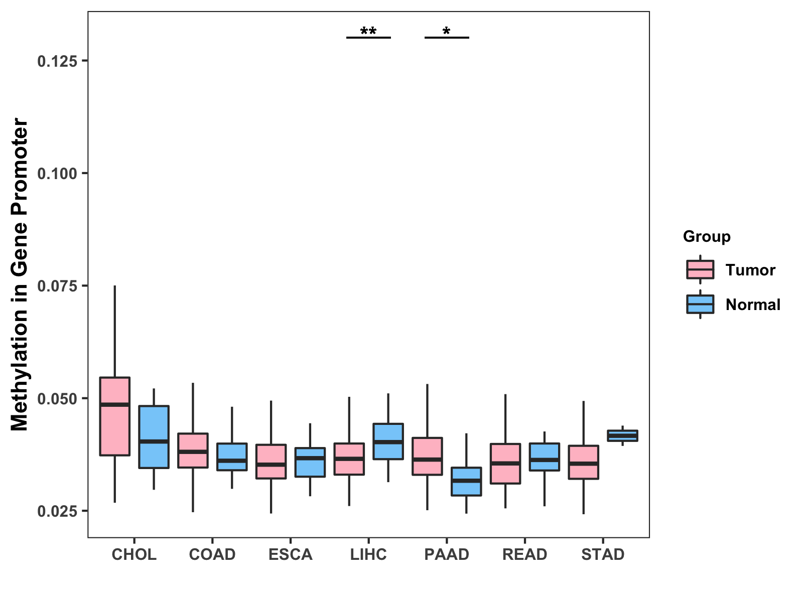 Methylation Level in Colon Cancer MODERATE Methylation Level in Rectum Cancer MODERATE