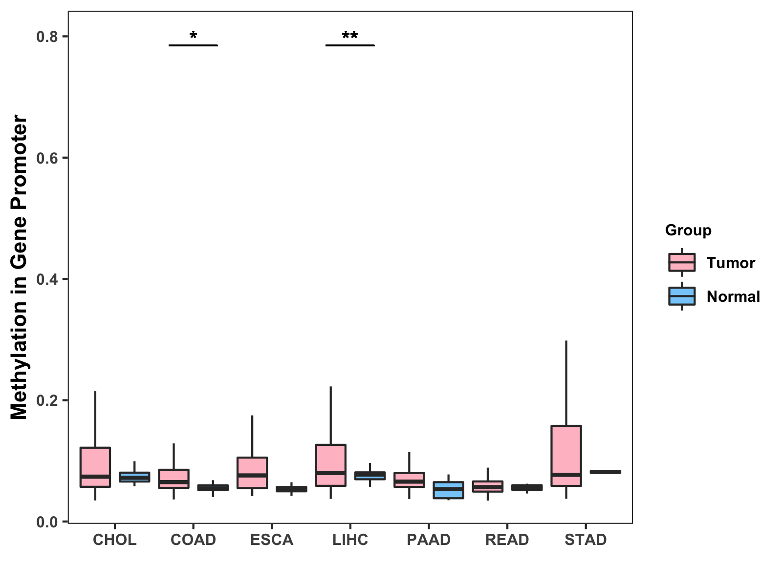 Methylation Level in Colon Cancer MODERATE Methylation Level in Rectum Cancer MODERATE