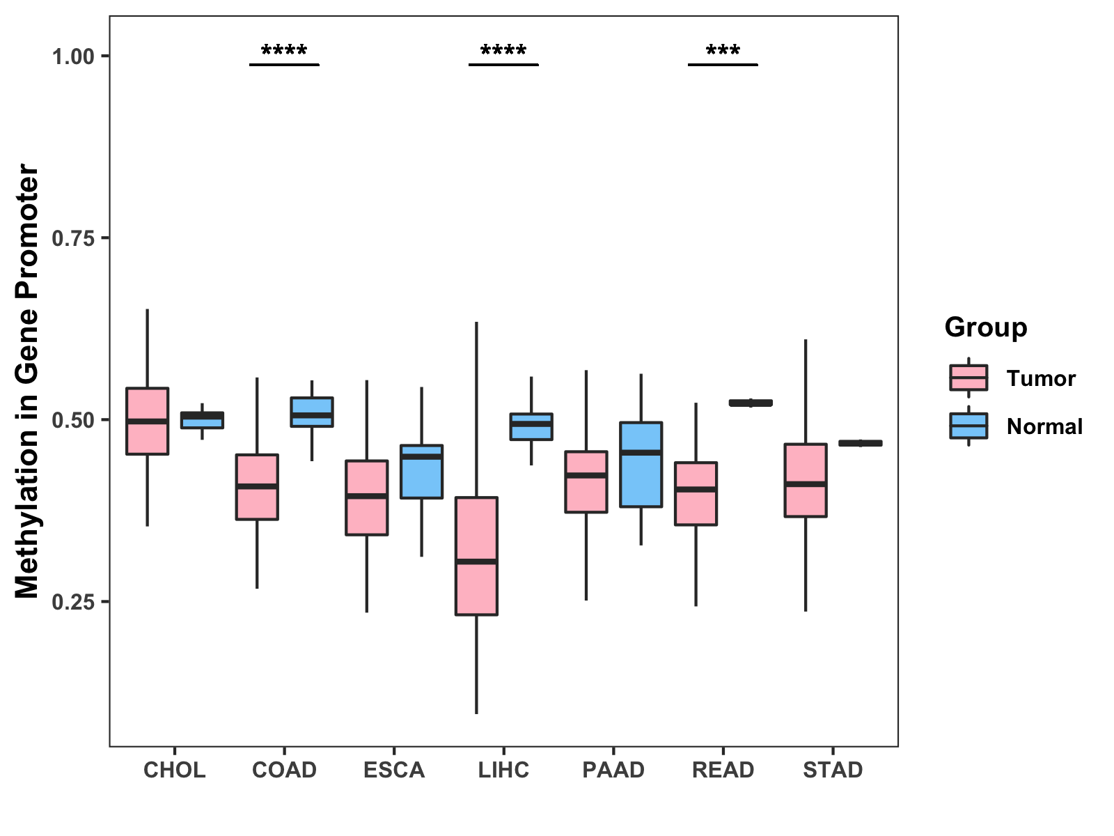Methylation Level in Colon Cancer MODERATE Methylation Level in Rectum Cancer LOW
