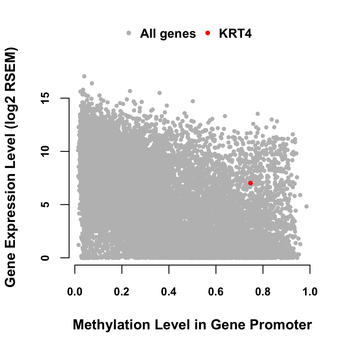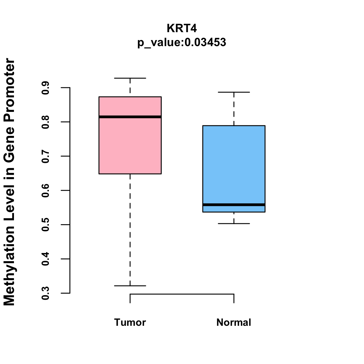 | Box Plot in Esophagus Cancer | Expression-Methylation Scatter Plot in Esophagus Cancer |