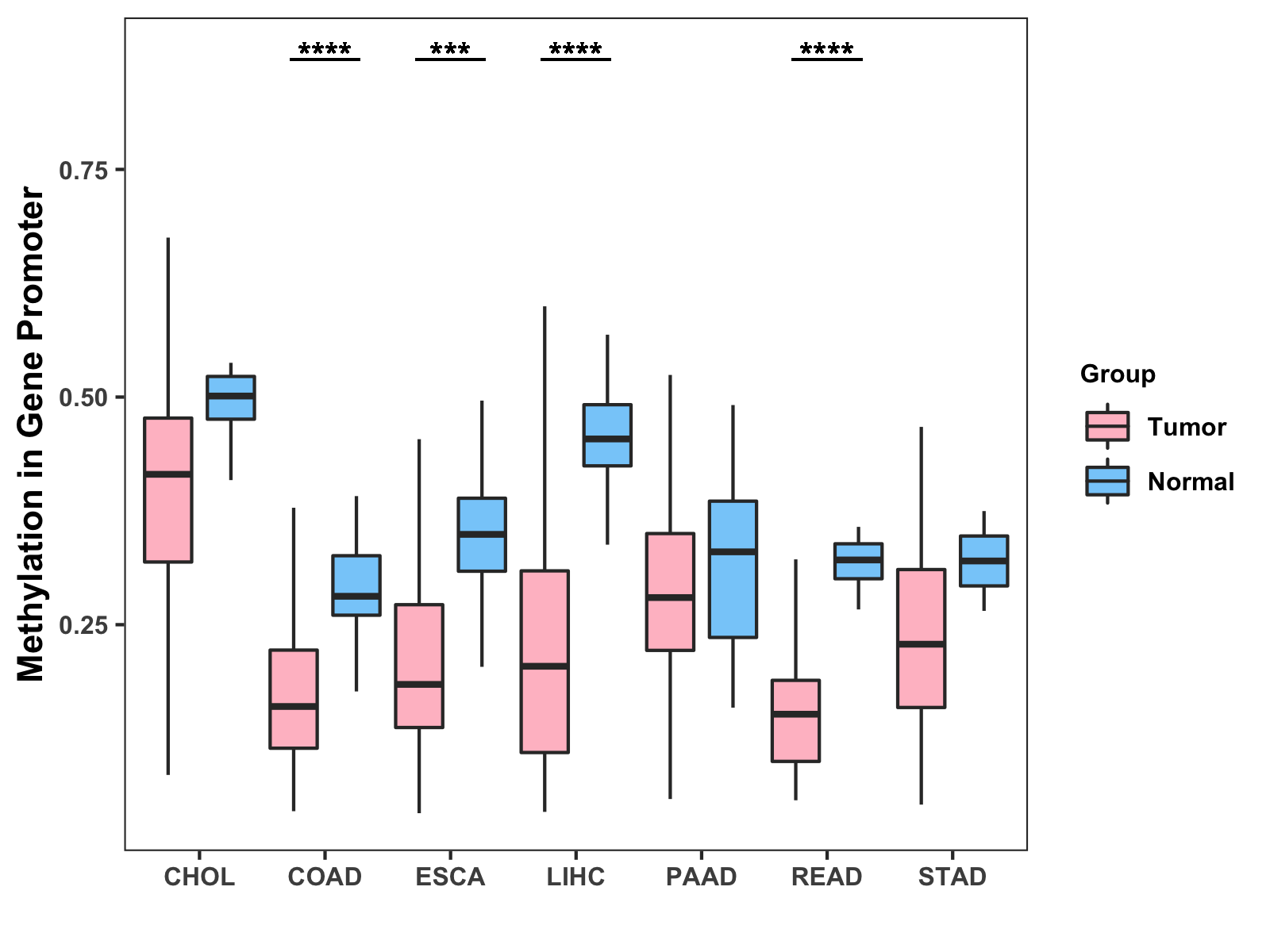 Methylation Level in Colon Cancer LOW Methylation Level in Rectum Cancer LOW