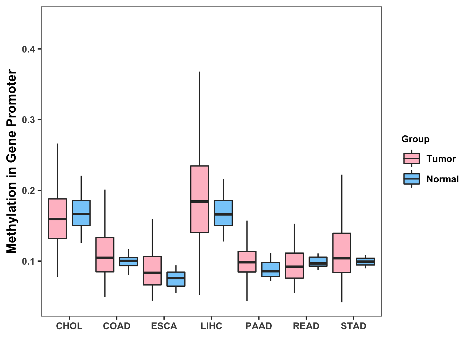 Boxplot of All Gastrointestinal Cancer ( * : 0.01-0.05 , ** : 0.005-0.01 , *** : 0.0001-0.005 , **** : < 0.0001 ) |