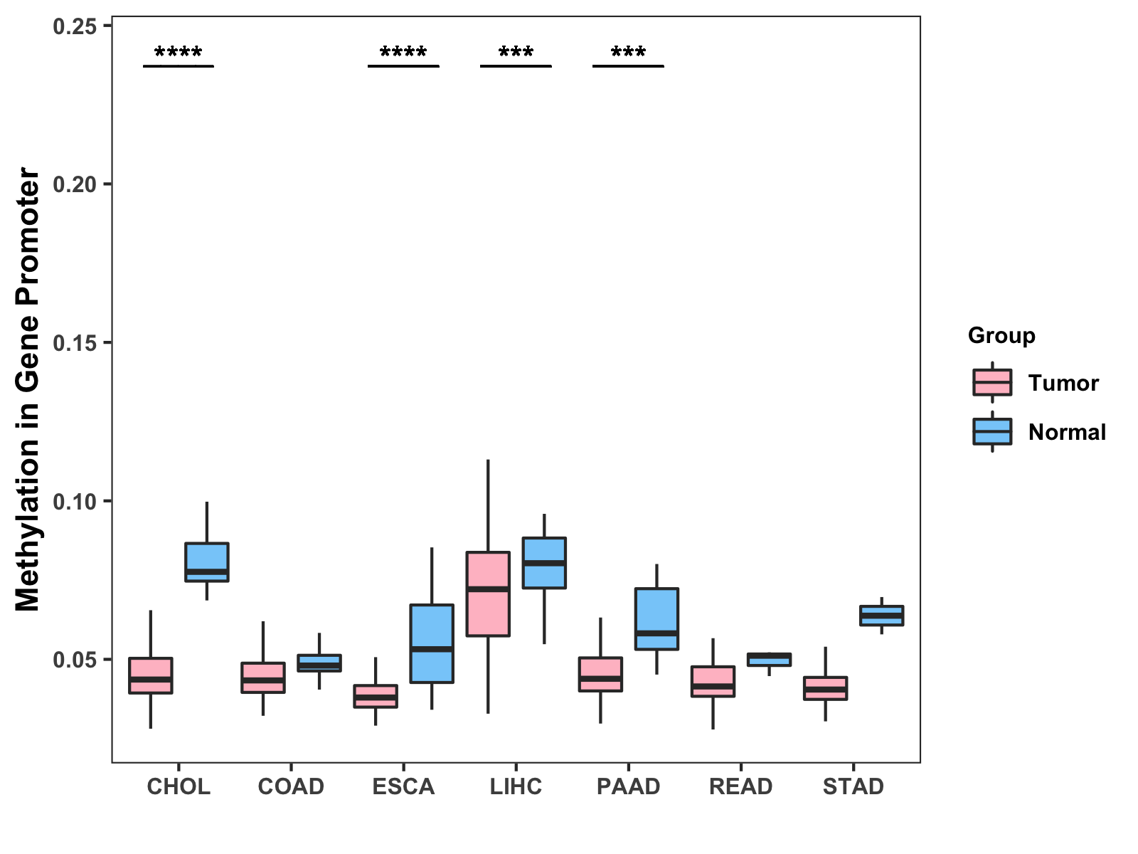 Methylation Level in Colon Cancer MODERATE Methylation Level in Rectum Cancer MODERATE