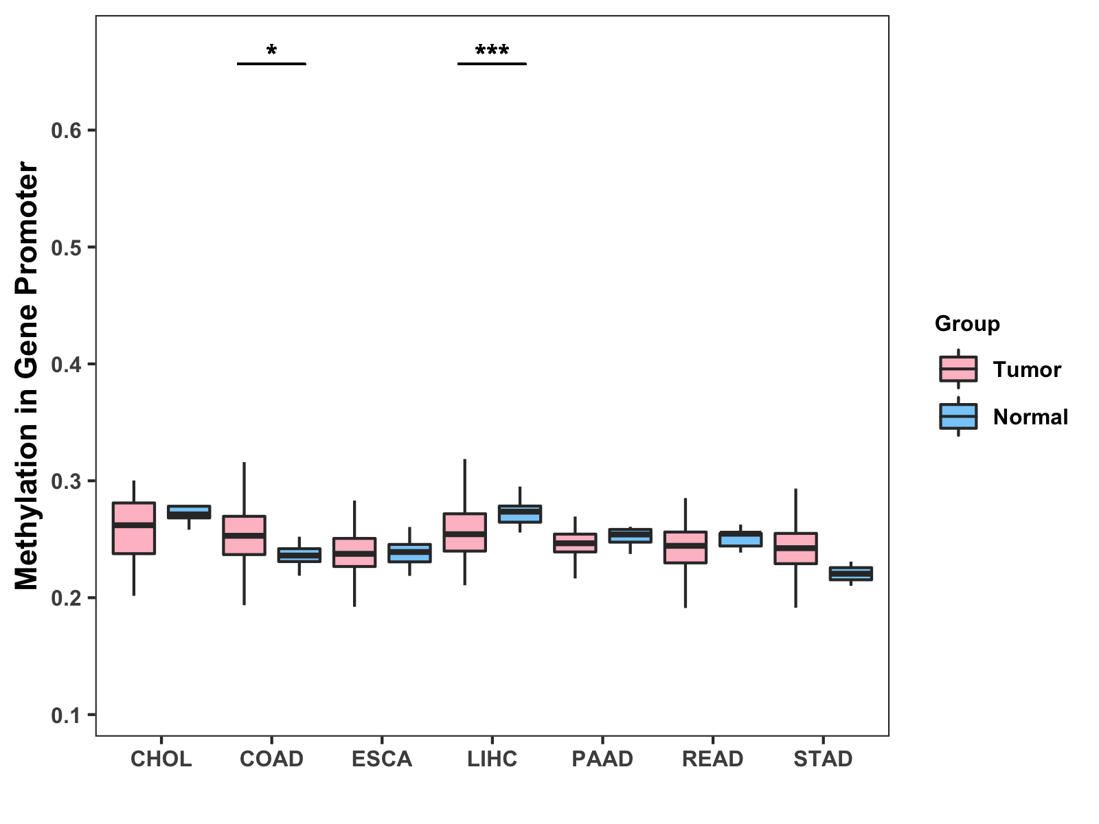 Boxplot of All Gastrointestinal Cancer ( * : 0.01-0.05 , ** : 0.005-0.01 , *** : 0.0001-0.005 , **** : < 0.0001 ) |