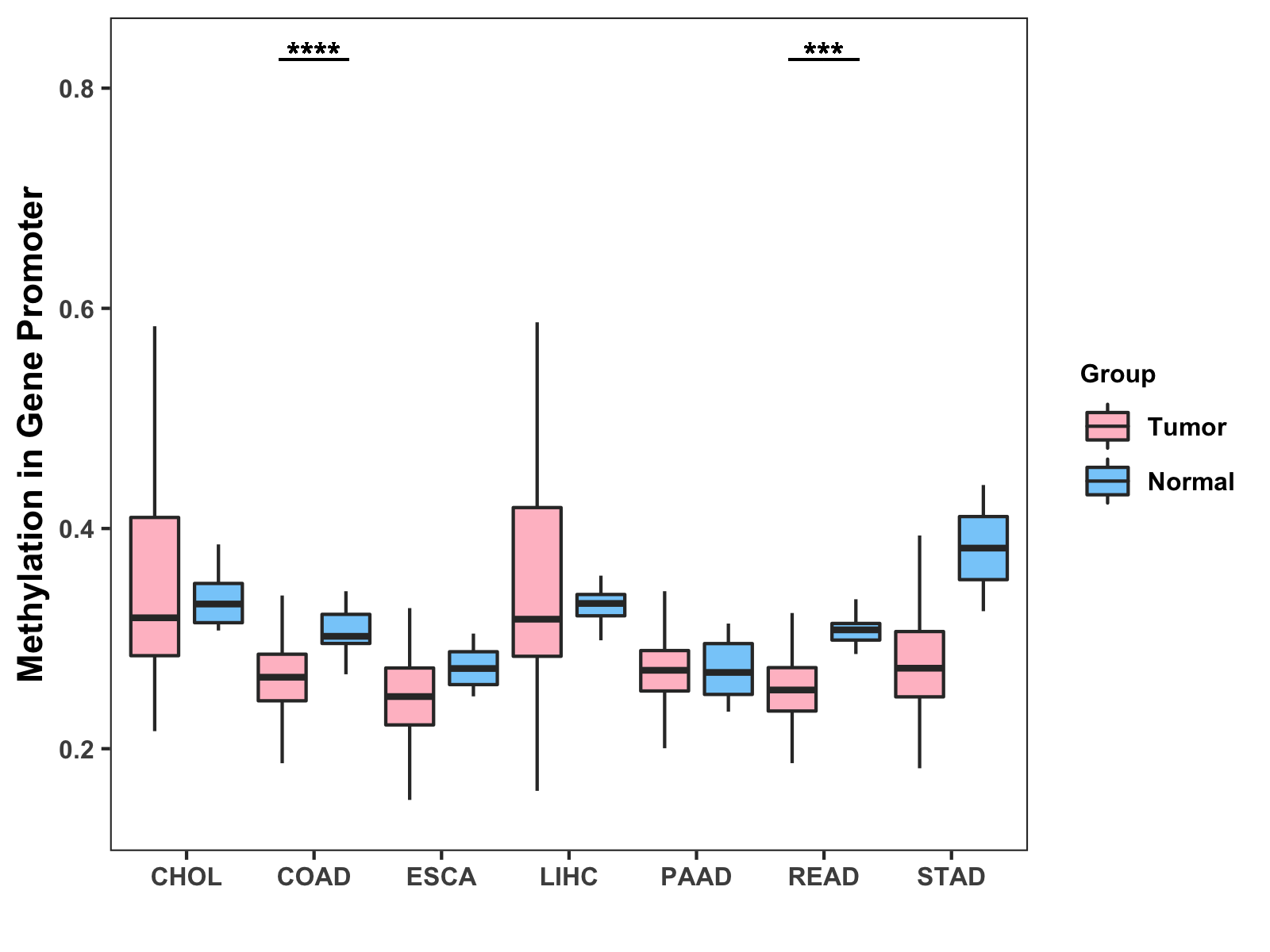 Methylation Level in Colon Cancer MODERATE Methylation Level in Rectum Cancer MODERATE