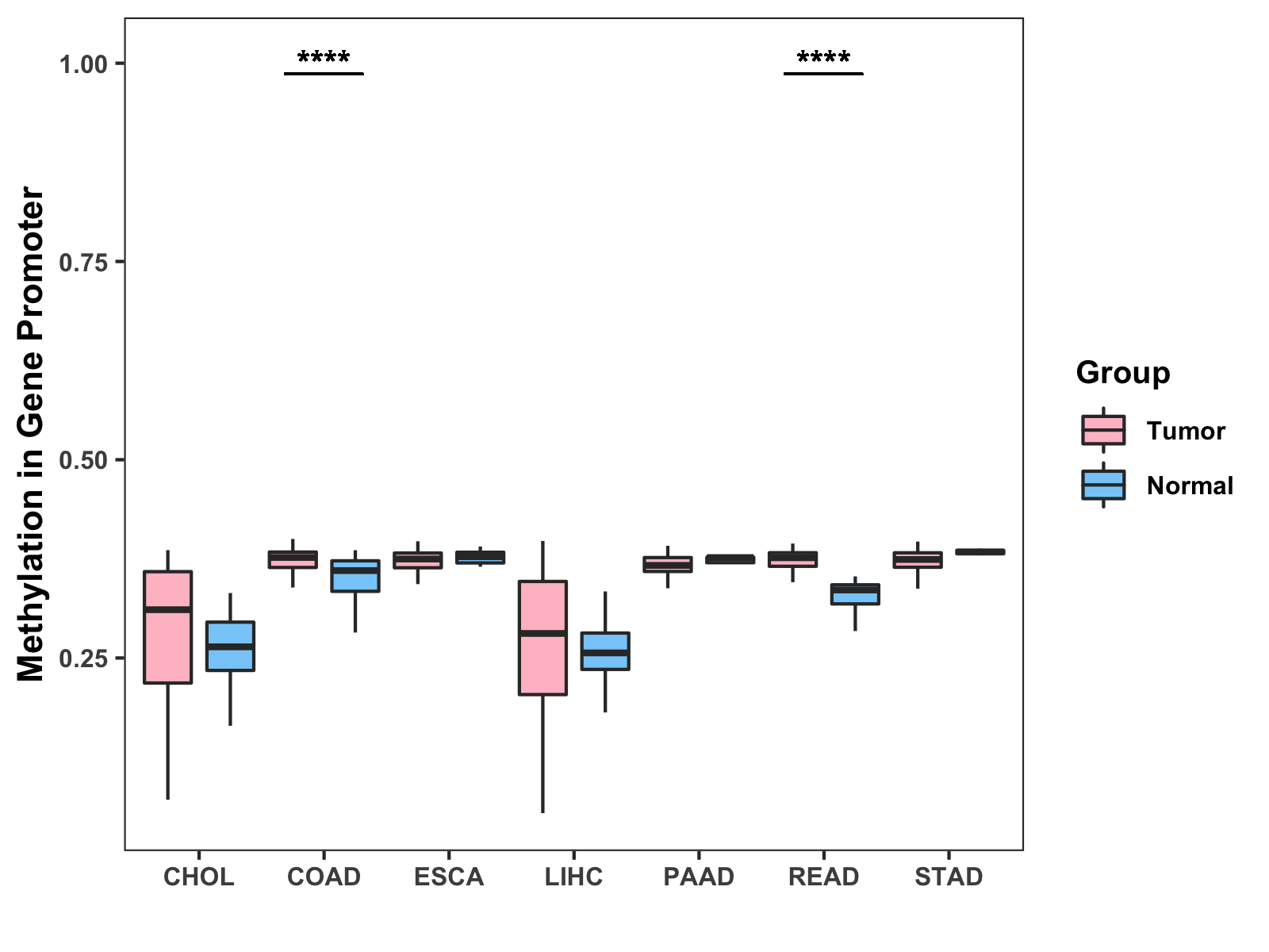 Methylation Level in Colon Cancer MODERATE Methylation Level in Rectum Cancer MODERATE