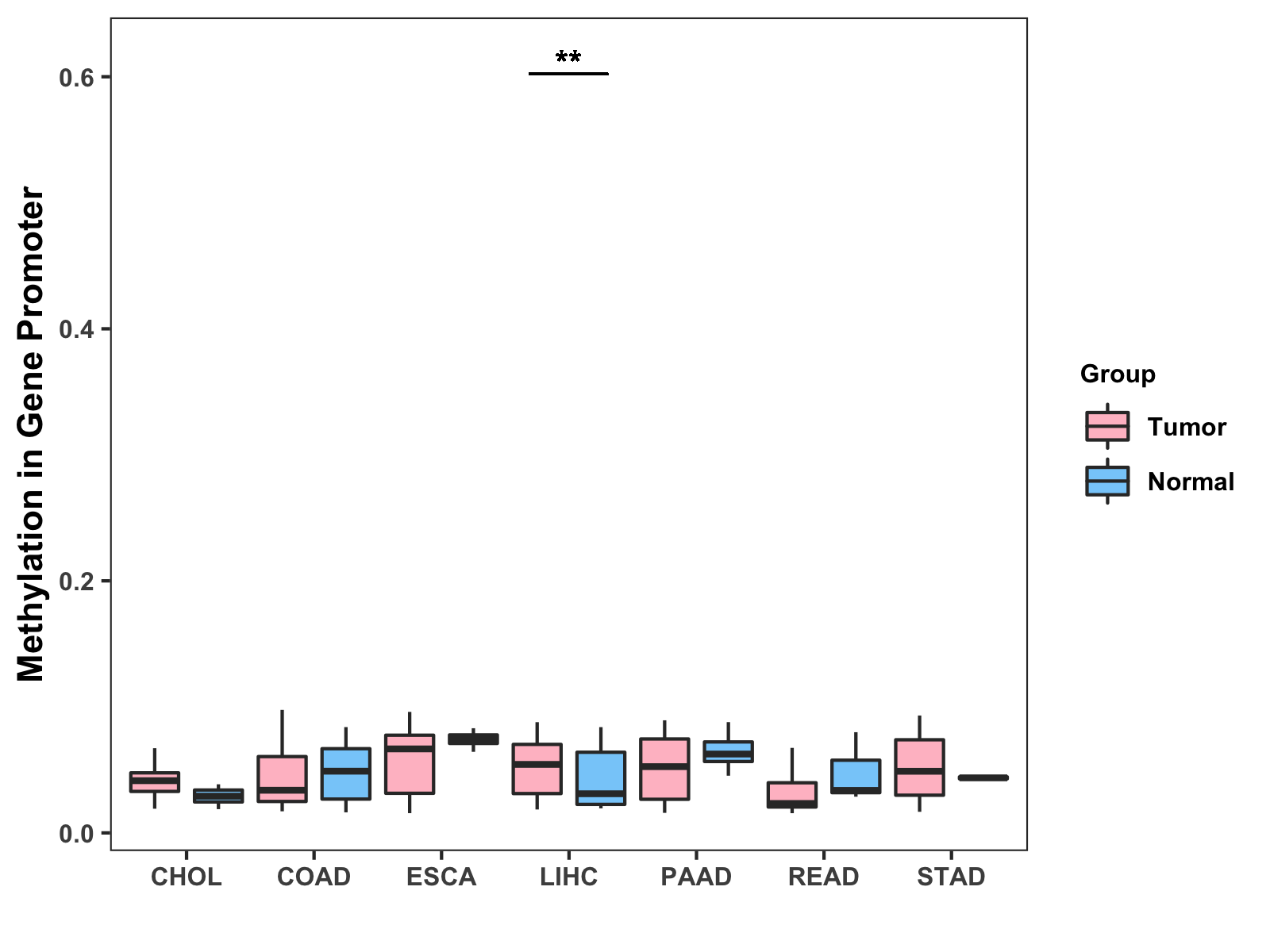 Boxplot of All Gastrointestinal Cancer ( * : 0.01-0.05 , ** : 0.005-0.01 , *** : 0.0001-0.005 , **** : < 0.0001 ) |