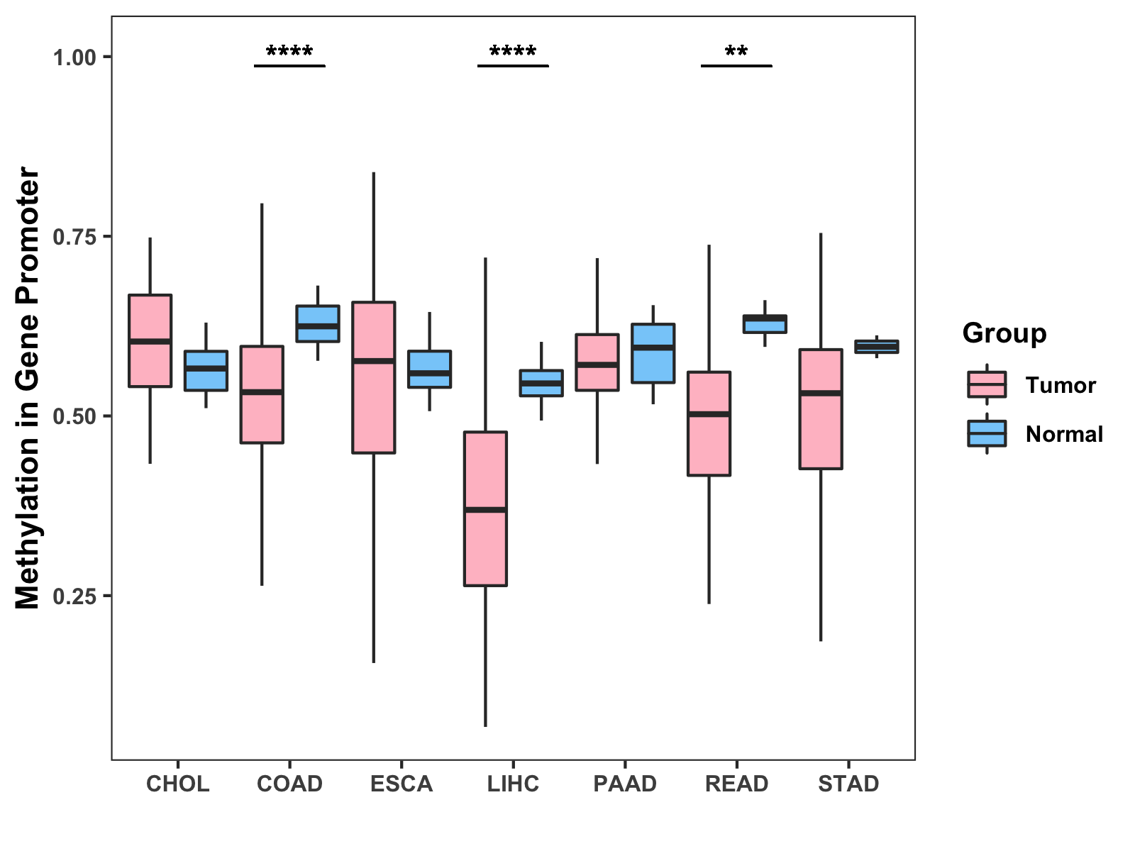 Methylation Level in Colon Cancer MODERATE Methylation Level in Rectum Cancer LOW