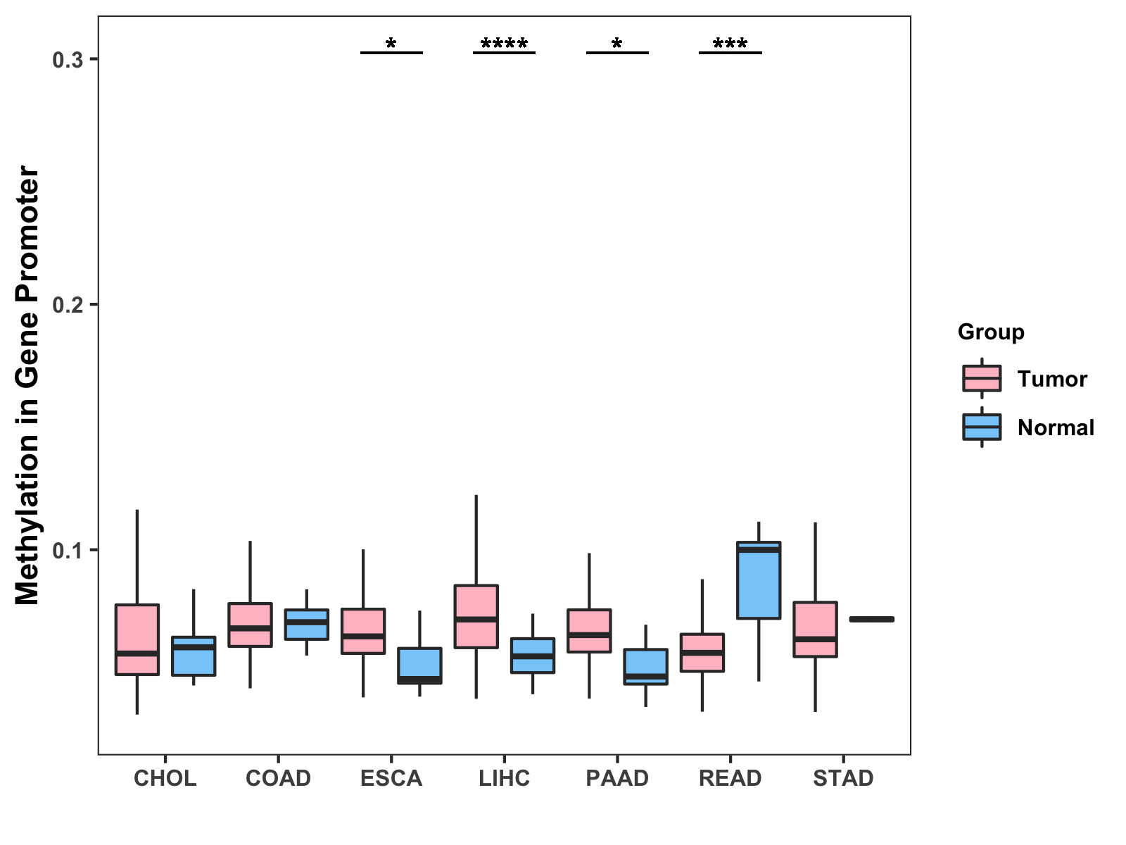 Methylation Level in Colon Cancer MODERATE Methylation Level in Rectum Cancer MODERATE