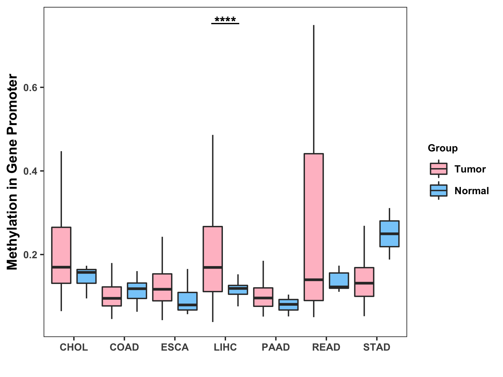 Methylation Level in Colon Cancer MODERATE Methylation Level in Rectum Cancer MODERATE