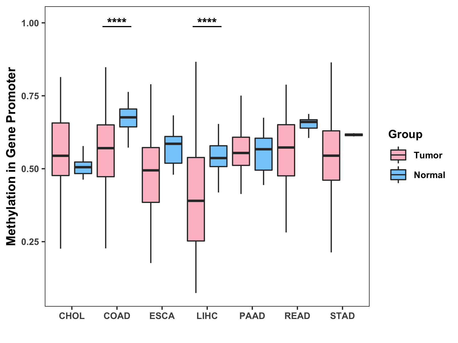 Methylation Level in Colon Cancer LOW Methylation Level in Rectum Cancer MODERATE