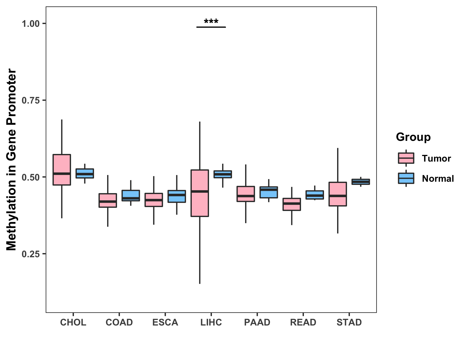 Boxplot of All Gastrointestinal Cancer ( * : 0.01-0.05 , ** : 0.005-0.01 , *** : 0.0001-0.005 , **** : < 0.0001 ) |