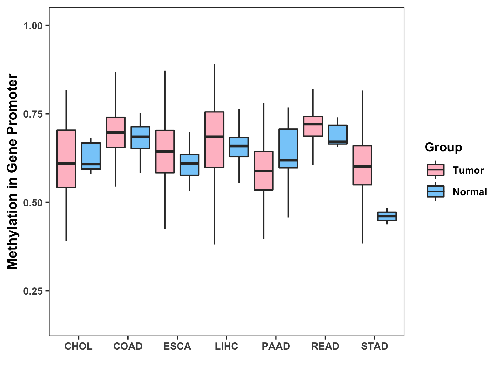 Boxplot of All Gastrointestinal Cancer ( * : 0.01-0.05 , ** : 0.005-0.01 , *** : 0.0001-0.005 , **** : < 0.0001 ) |
