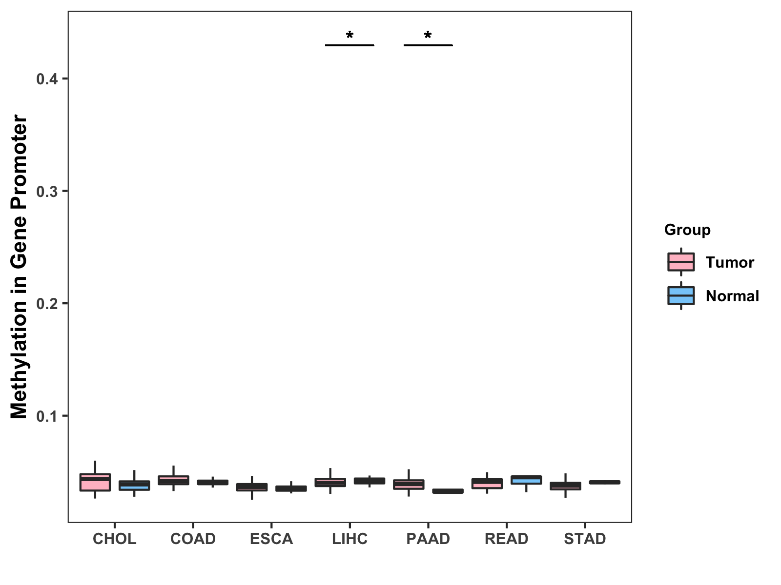 Methylation Level in Colon Cancer MODERATE Methylation Level in Rectum Cancer MODERATE