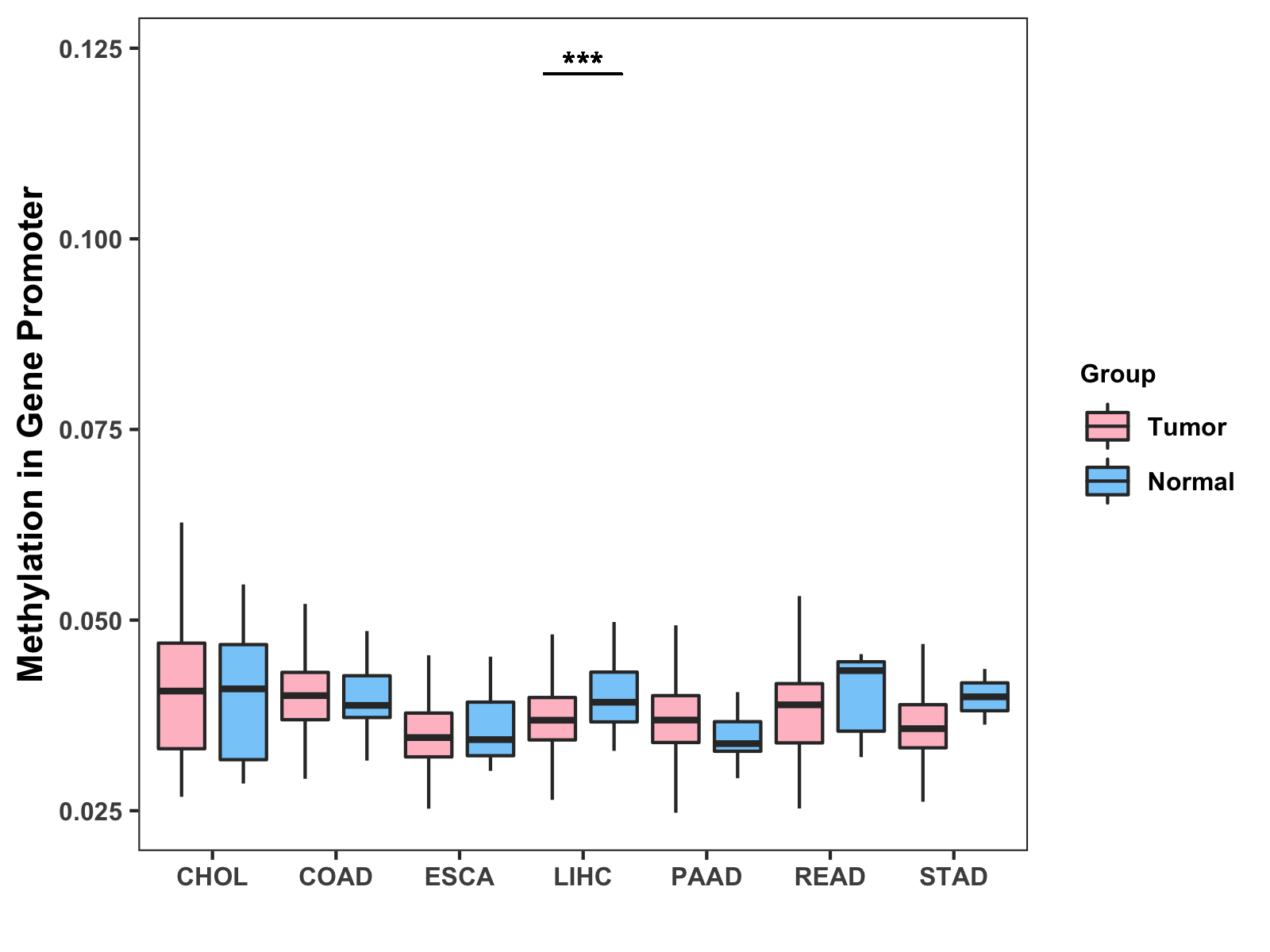 Boxplot of All Gastrointestinal Cancer ( * : 0.01-0.05 , ** : 0.005-0.01 , *** : 0.0001-0.005 , **** : < 0.0001 ) |