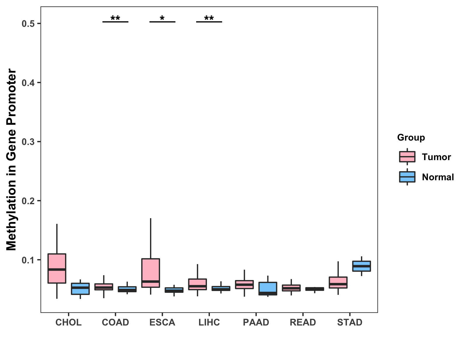 Methylation Level in Colon Cancer MODERATE Methylation Level in Rectum Cancer MODERATE