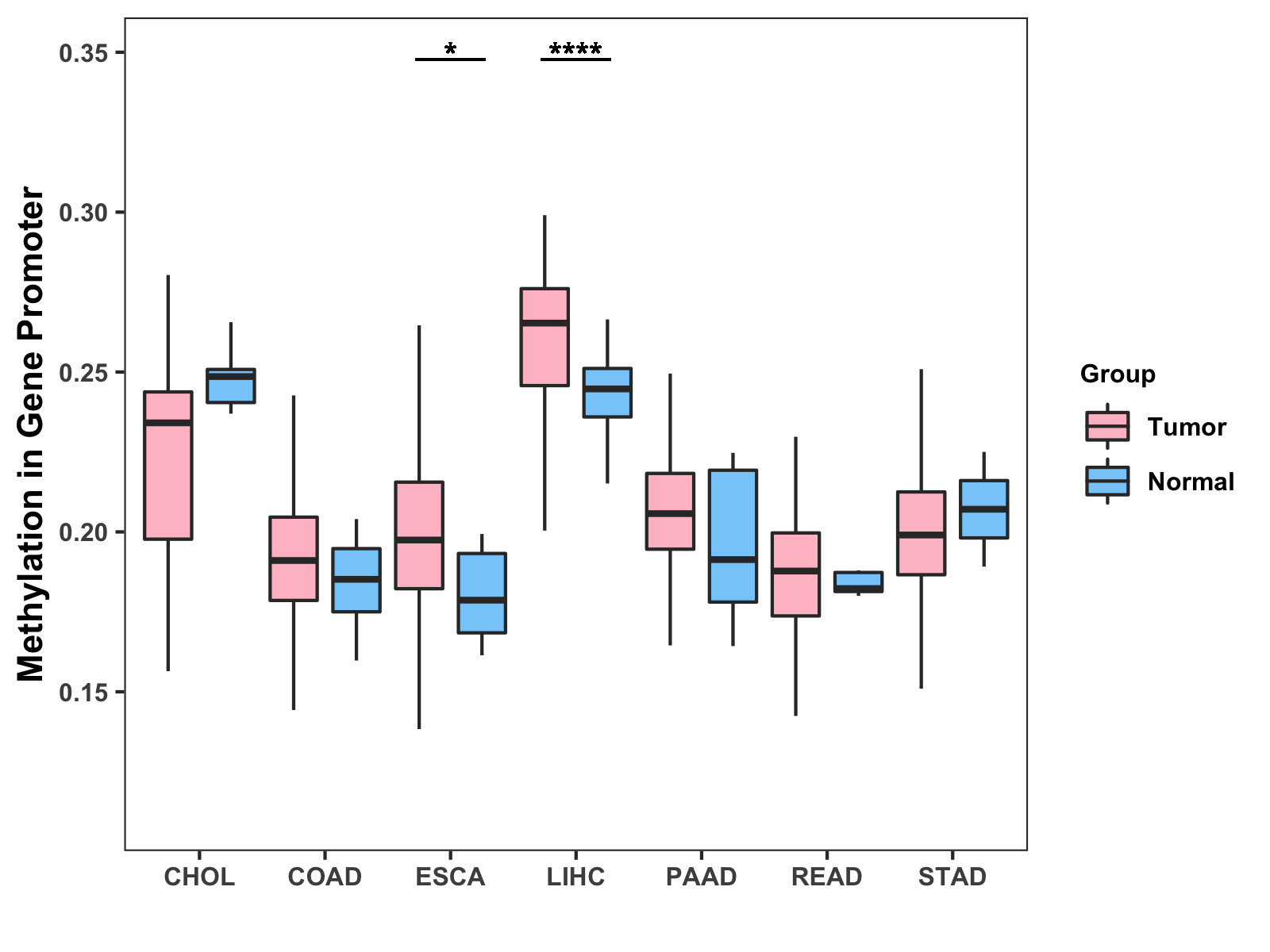 Methylation Level in Colon Cancer MODERATE Methylation Level in Rectum Cancer MODERATE