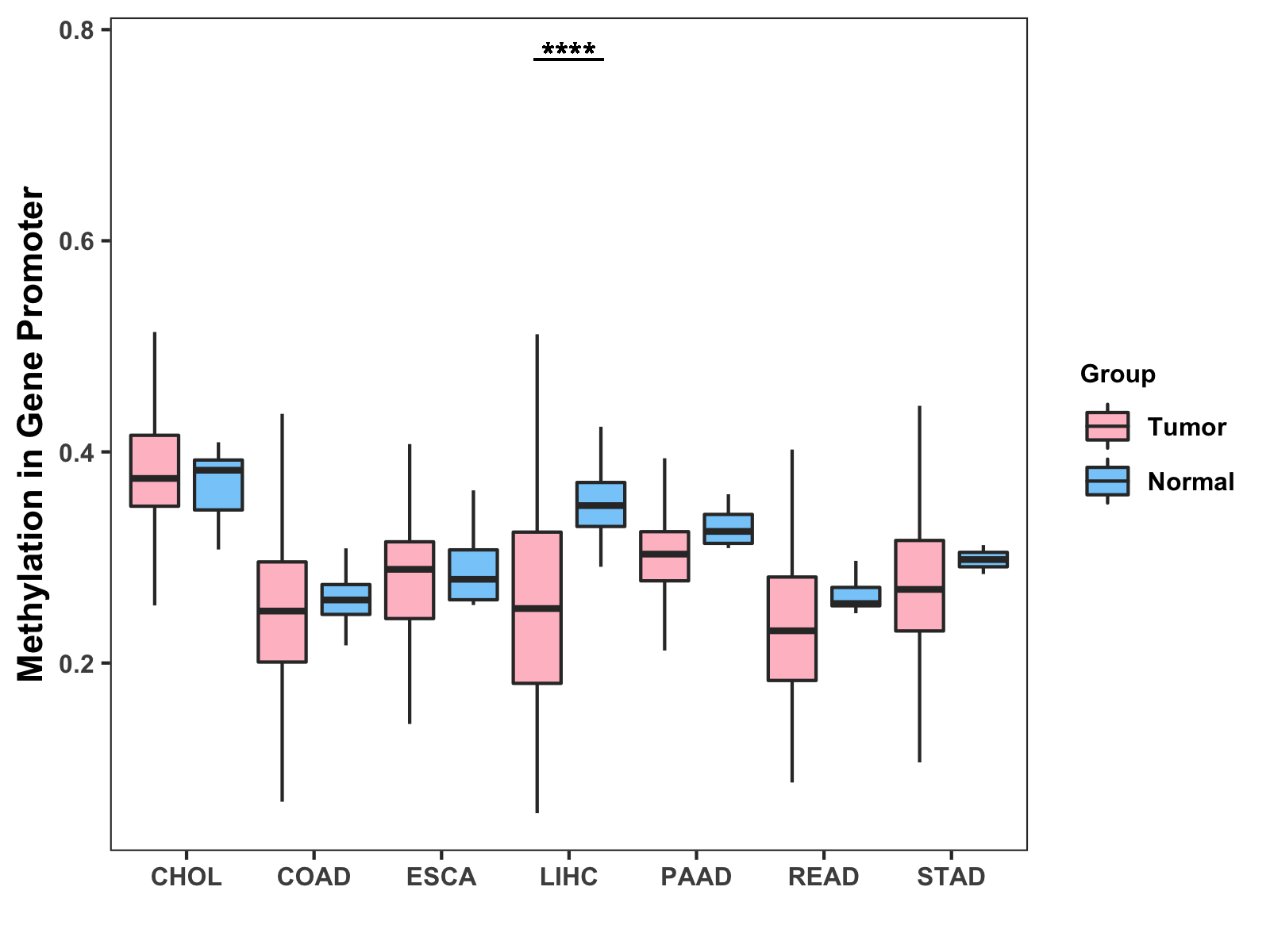 Methylation Level in Colon Cancer MODERATE Methylation Level in Rectum Cancer MODERATE
