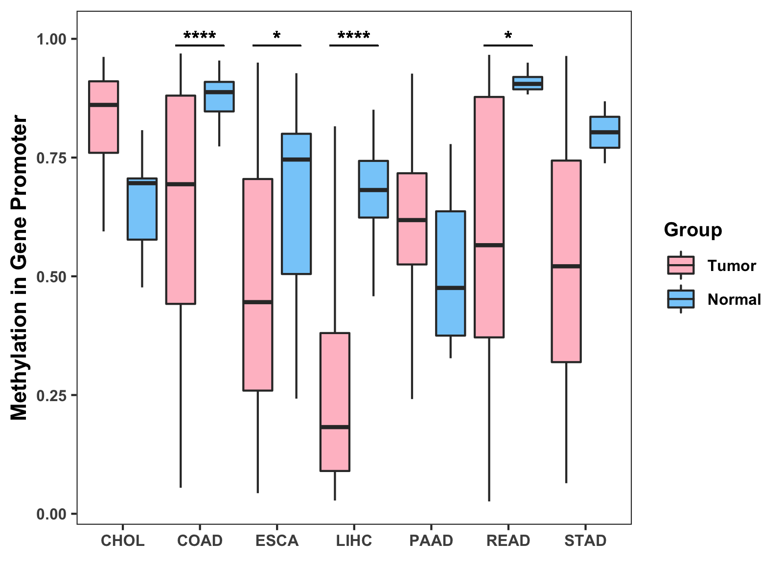 Methylation Level in Colon Cancer LOW Methylation Level in Rectum Cancer LOW