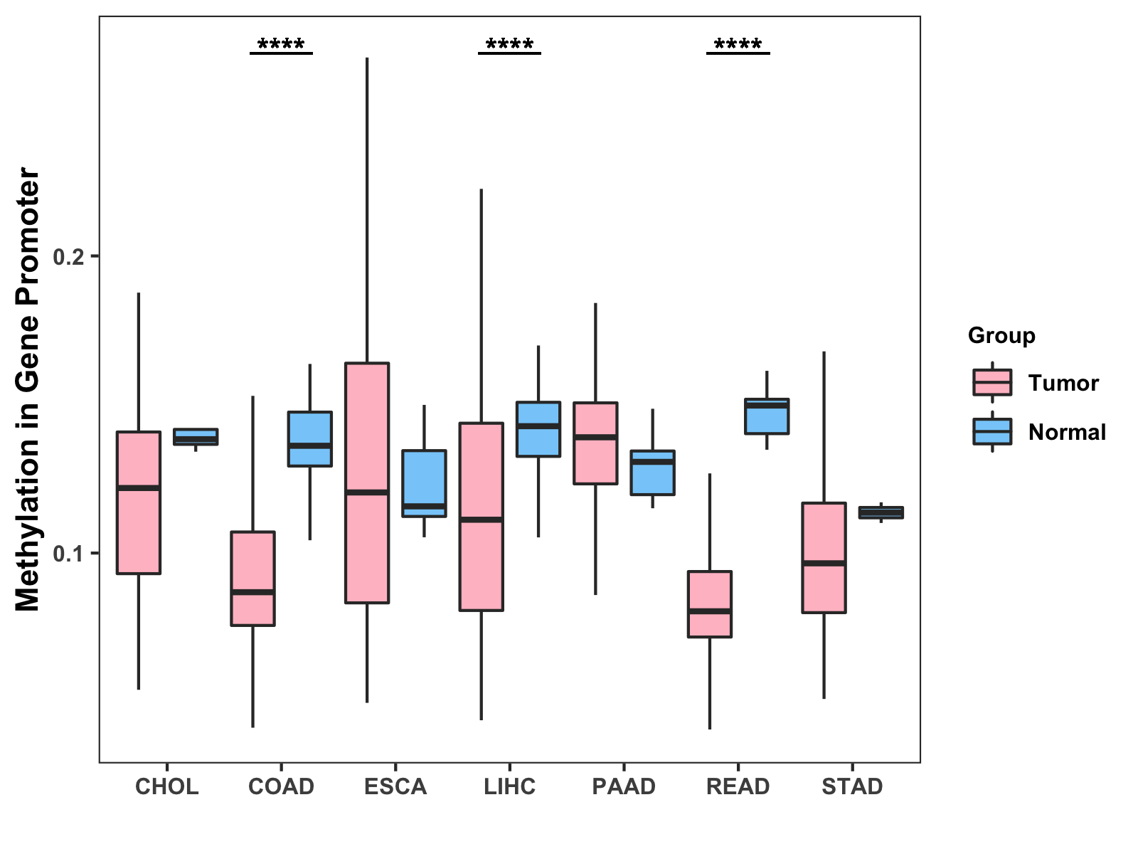 Methylation Level in Colon Cancer MODERATE Methylation Level in Rectum Cancer MODERATE