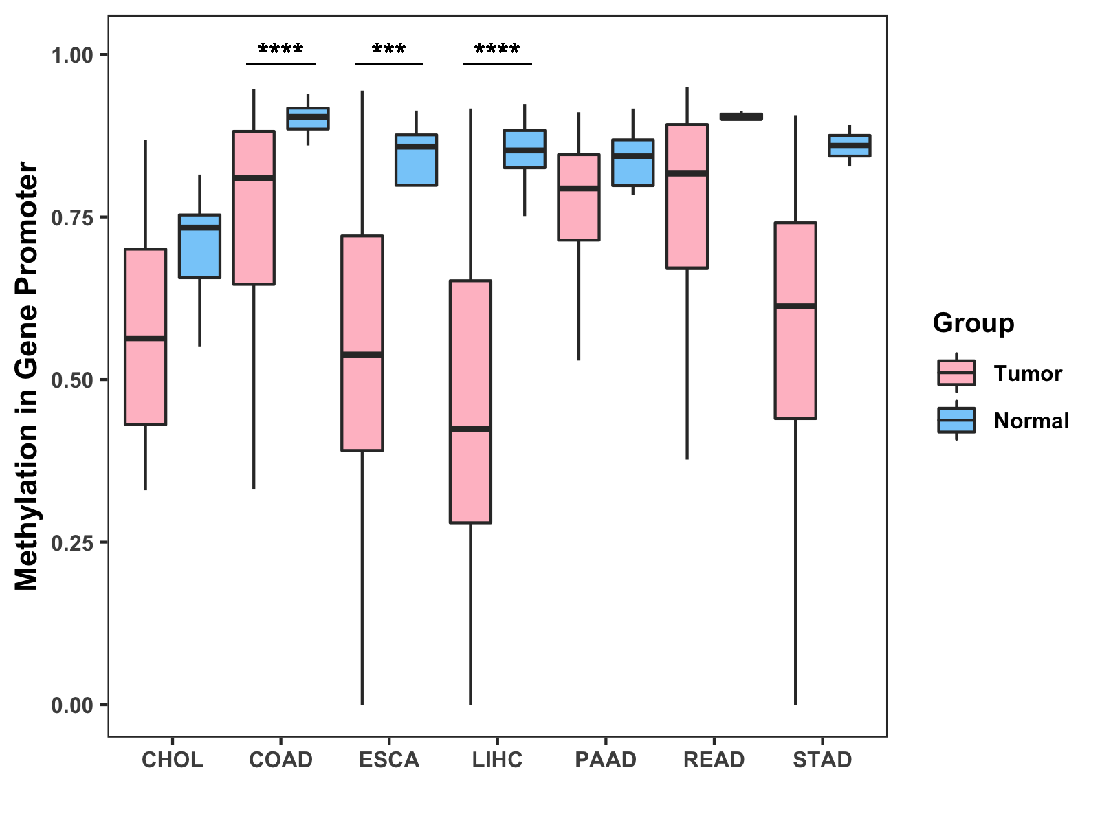 Methylation Level in Colon Cancer MODERATE Methylation Level in Rectum Cancer MODERATE