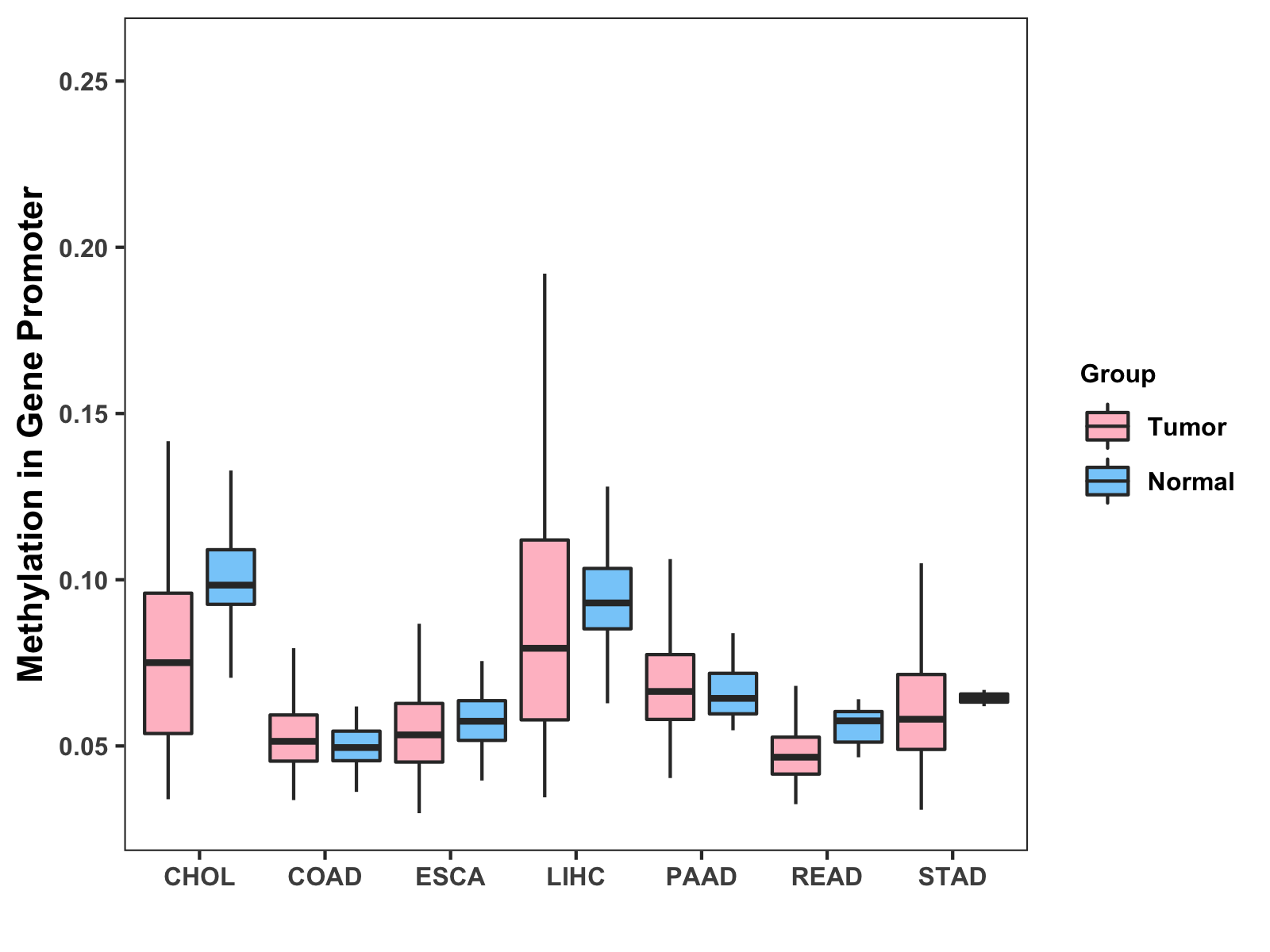 | Box Plot in Stomach Cancer | Expression-Methylation Scatter Plot in Stomach Cancer |