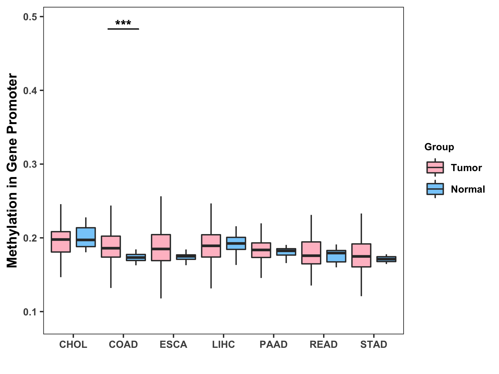 Boxplot of All Gastrointestinal Cancer ( * : 0.01-0.05 , ** : 0.005-0.01 , *** : 0.0001-0.005 , **** : < 0.0001 ) |
