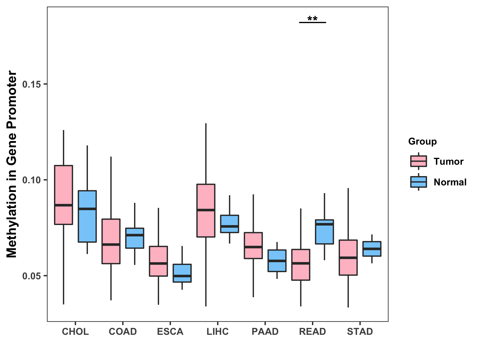 Methylation Level in Colon Cancer MODERATE Methylation Level in Rectum Cancer MODERATE