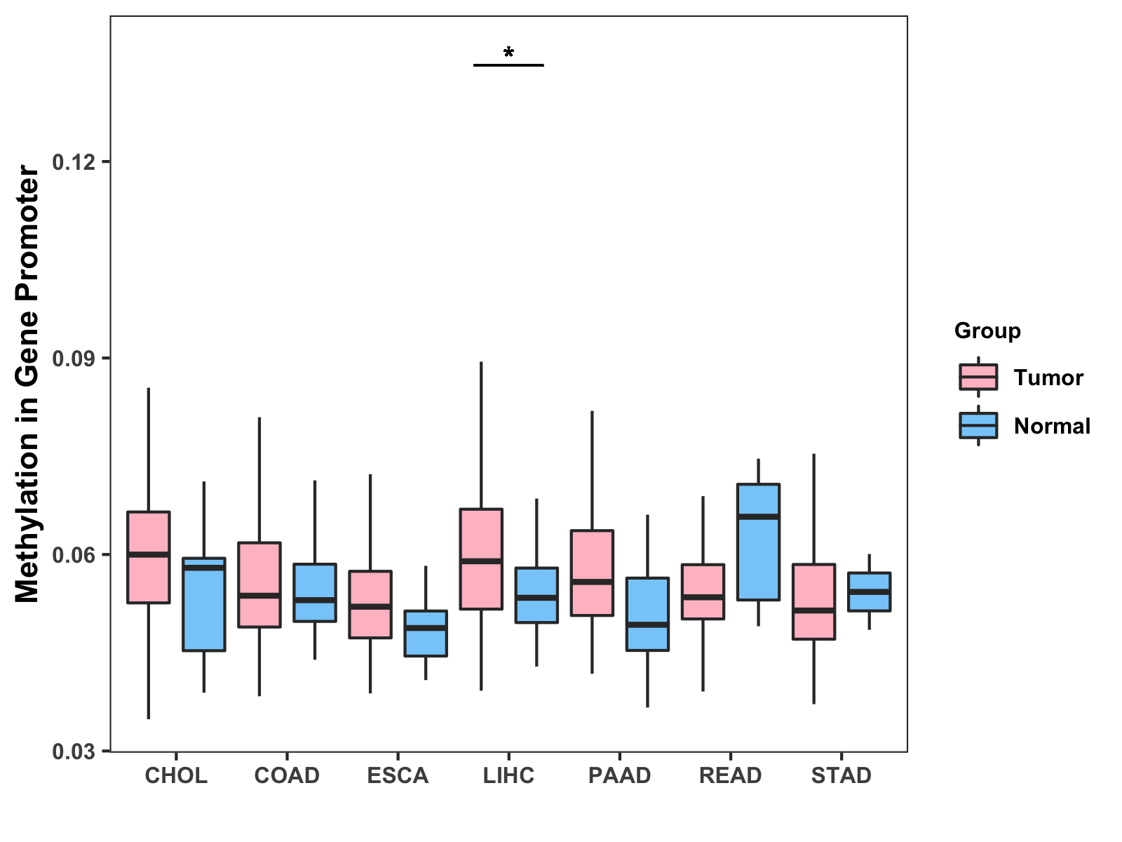 Boxplot of All Gastrointestinal Cancer ( * : 0.01-0.05 , ** : 0.005-0.01 , *** : 0.0001-0.005 , **** : < 0.0001 ) |