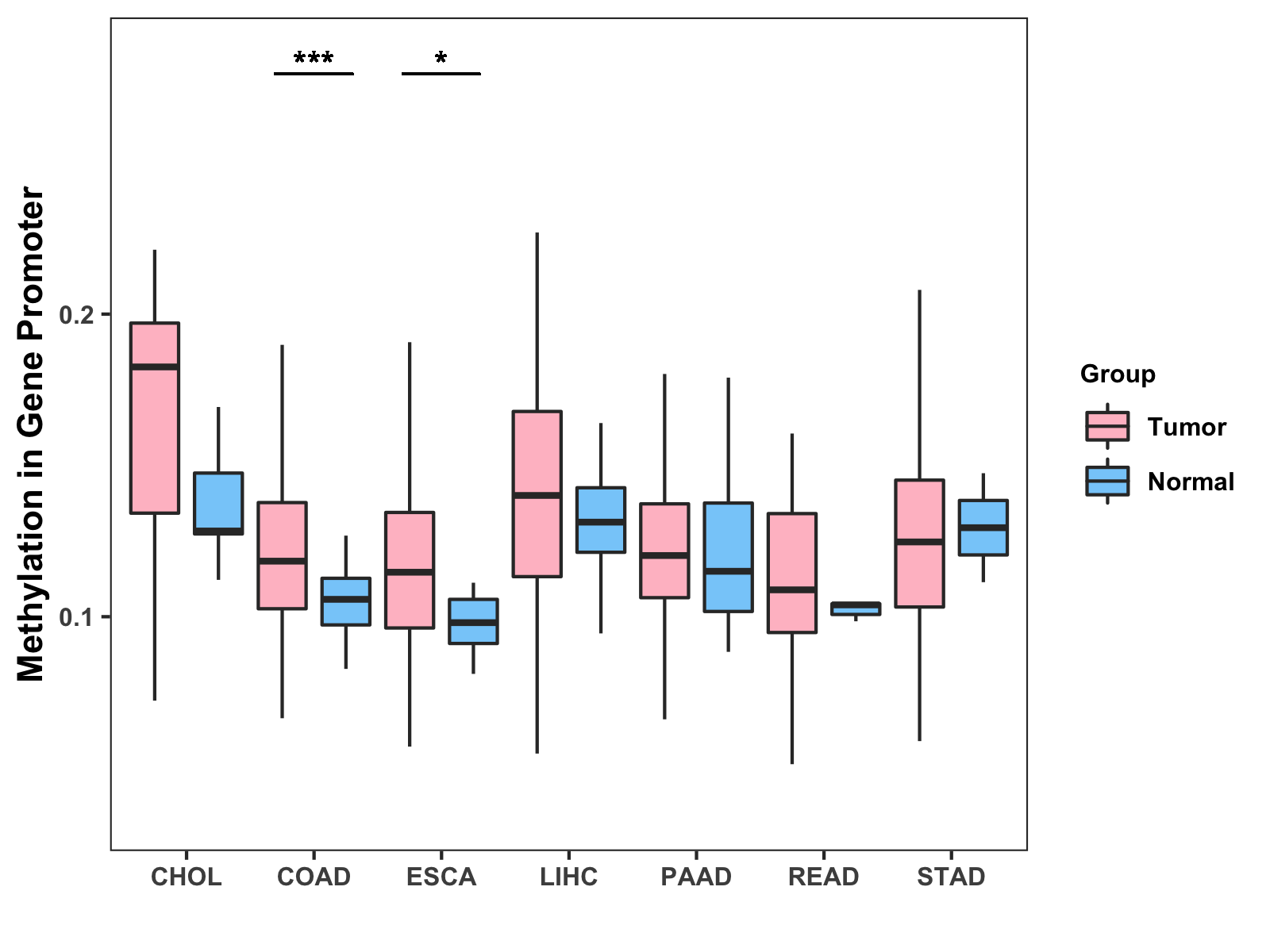 Methylation Level in Colon Cancer MODERATE Methylation Level in Rectum Cancer MODERATE