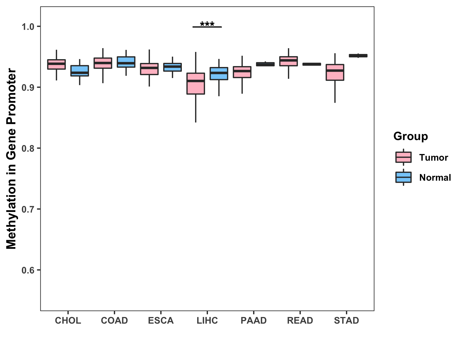 Boxplot of All Gastrointestinal Cancer ( * : 0.01-0.05 , ** : 0.005-0.01 , *** : 0.0001-0.005 , **** : < 0.0001 ) |