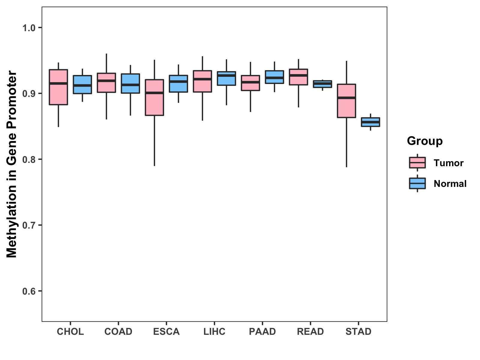 Boxplot of All Gastrointestinal Cancer ( * : 0.01-0.05 , ** : 0.005-0.01 , *** : 0.0001-0.005 , **** : < 0.0001 ) |